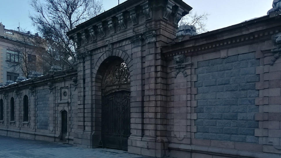 The solid stone fence connecting the two wings, which appeared on the estate later, was built in 1911 by architect Nikolai Nikolaevich Chernetsov for the next owner of the house, Lev Konstantinovich Zubalov. The structure is 9 meters high and designed in the Roman Baroque style.